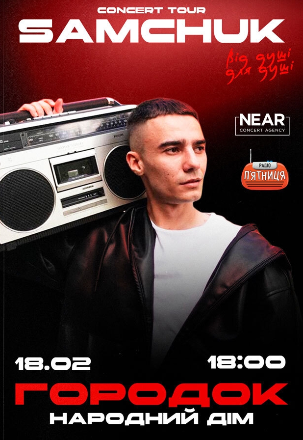 Samchuk відбудеться 18 лютого 2026, 18:00, середа в Народний дім (Львівська обл.). За допомогою сервісу internet-bilet.ua, Ви зможете з легкістю забронювати, замовити та купити квитки на концерт, спектакль, оперу, балет, майстер-класи, спортивні та дитячі заходи, що Вас цікавлять, оплативши їх найбільш зручним для Вас способом: через інтернет банківською карткою VISA/MasterCard, готівкою або кур'єром, якщо зробите замовлення квитка з доставкою.